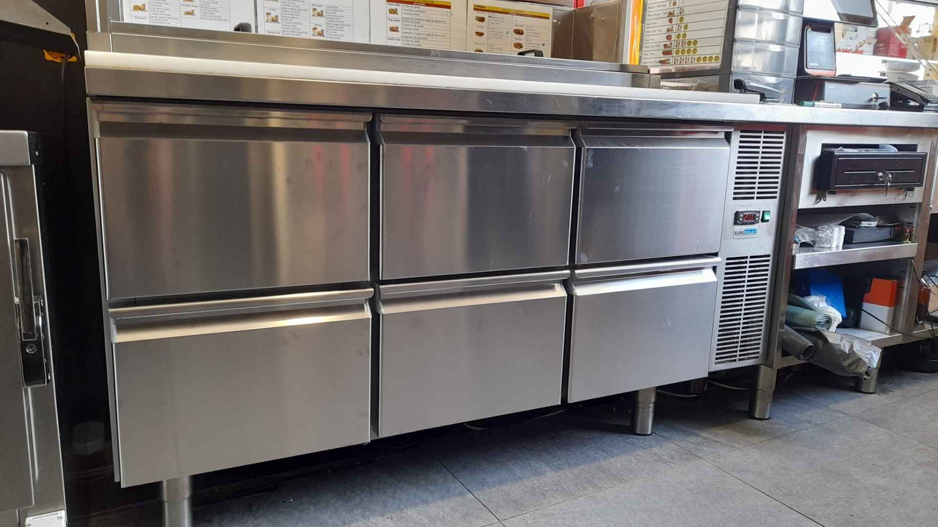 Conclusion: Le meuble réfrigéré a été efficacement transformé pour offrir une meilleure utilisation de l'espace avec l'ajout de tiroirs, augmentant ainsi la fonctionnalité et l'efficacité du rangement.